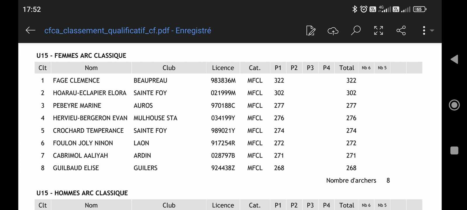 Résultats de la première journée. Bravo les filles !!